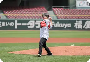 また、代表取締役 ⾼宮 徳和による始球式も⾏なわれました。
